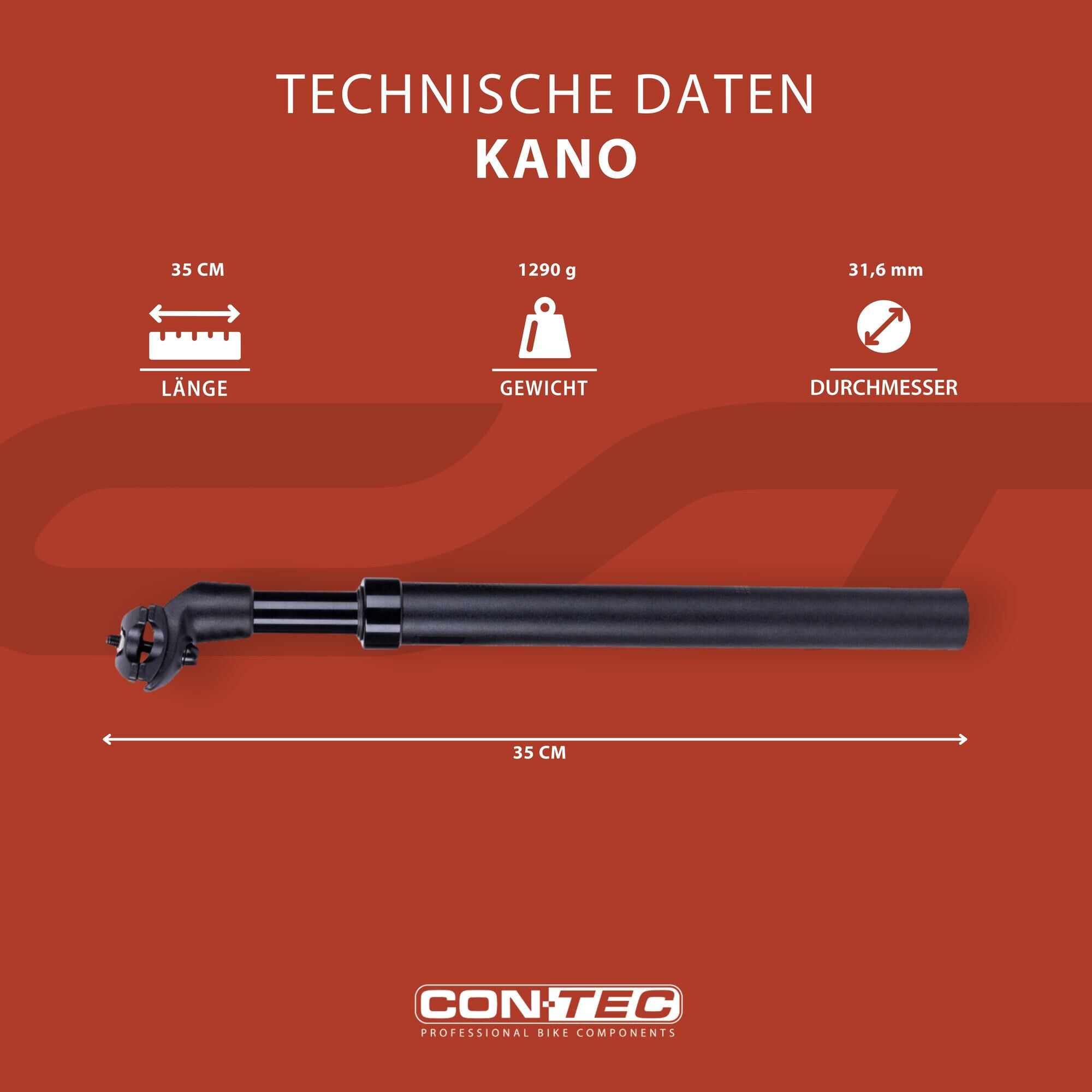 Federsattelstütze Kano von CONTEC Die Kano von CONTEC ist eine Federsattelstütze, die 350.0 mm lang ist und einen Durchmesser von 31.6 mm hat. Eine gefederte Sattelstütze bietet dir vor allem viel Komfort. Der Federweg absorbiert Stöße von Kopfsteinpflaster oder unebenen Waldwege, sodass sie nicht direkt an den Rücken weitergegeben werden. Geeignet ist die Sattelstütze für alle Fahrer, die maximal 120 kg wiegen.