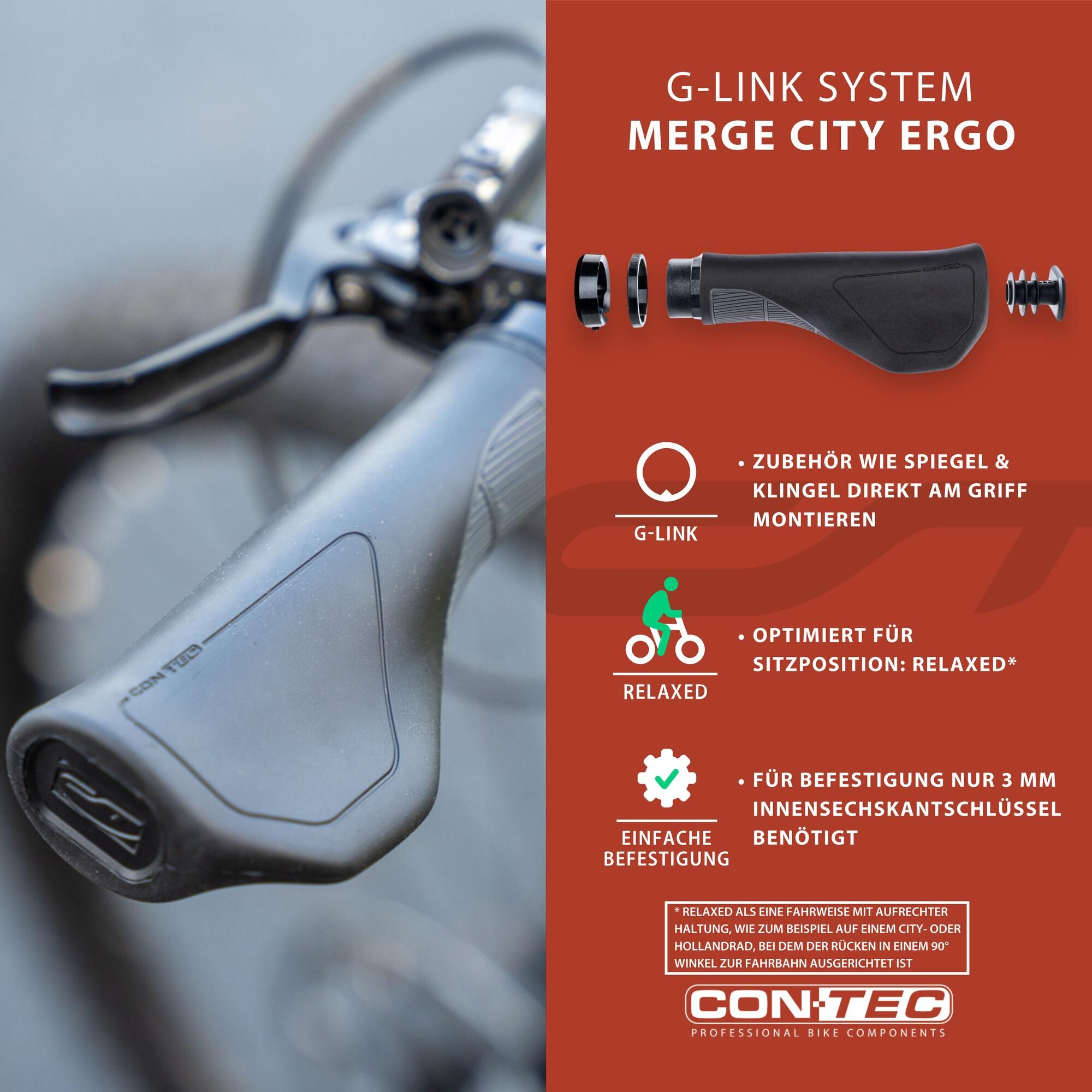 Mit CONTEC G-Link System - durch die spezielle Klemmvorrichtung lassen sich Zubehörartikel einfach an dem Griff befestigen und geben so ein geordnetes und übersichtliches Lenkerbild ab, links und rechts nutzbar