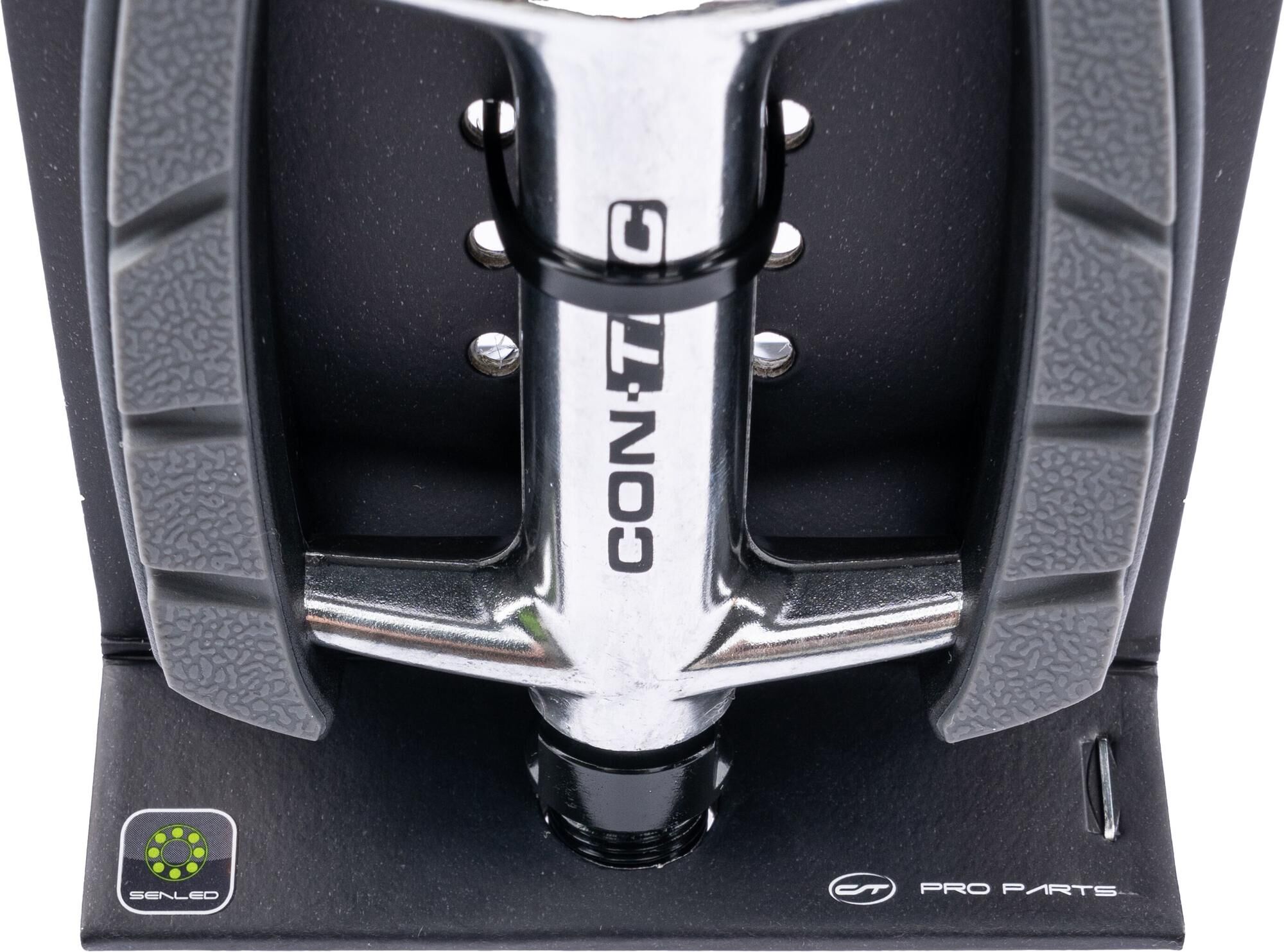 Rutschfest & reflektierendDas CONTEC Tour-/Trekkingpedal "1Boot" bringt alle Voraussetzungen für unvergessliche Touren mit sich. Ein trittsicheres Pedal aus stabilem Aluminium!Mit dem "1Boot" kommt dem passionierten Radfahrer ein hochwertiges Trekkingpedal unter die Füße. Der robuste Kunststoffkäfig punktet mit einer überaus rutschfesten Trittfläche, deren griffiges Profil auch bei nasser Witterung und matschigem Boden erstklassigen Halt verspricht. Zur Sicherheit rund um das sportliche Pedal tragen zudem die integrierten und gut sichtbaren Reflektoren bei.Die Widerstandsfähigkeit wird bei diesem Trekkingpedal über das gedichtete Industrielager und den Alukörper realisiert. Zudem sorgt die schimmernde CrMo-Achse nicht nur für eine glänzende Optik, sondern auch für bestechende Stabilität. Beides erhöht den Fahrspaß spürbar.Dieses 9/16" große Pedal ist ein nur ungefähr 260 g wiegendes Leichtgewicht, das seine hervorragenden Tritteigenschaften mit der bewährten Robustheit von Aluminium vereint. Ein idealer Begleiter für alle, die ihre Touren schon beim Pedal auf ein sicheres Fundament stellen möchten!