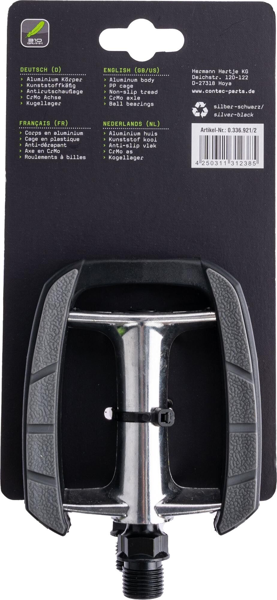 Komfort und sicherer Tritt auf jeder TourWer ausgedehnte Radtouren genießt und viele Kilometer bei Sonnenschein und Regen fährt, benötigt Pedale, die guten Halt und Komfort bieten. Das CONTEC Tour-/Trekkingpedal "Boot" ist aufgrund seines soliden Alu-Körpers sowie des Käfigs aus strapazierfähigem Kunststoff eine gute Lösung für Allwetter-Radler: Jedes Schuhwerk findet sicheren Halt auf der rutschfest beschichteten Trittfläche des "Boot".Leichtgängige Konuslager gewährleisten einen beschwerdefreien Vortrieb und die hochwertigen Achsen aus besonders robustem CrMo-Stahl sorgen für Langlebigkeit und erhöhte Bruchsicherheit unter Dauerbelastung. Die Pedale wiegen 310 g, sind mit einem 9/16"-Gewinde ausgestattet und kompatibel mit allen gängigen Kurbeln. Bei Nachtfahrten sorgen die integrierten und StVZO-konformen Reflektoren des "Boot" für gute Sichtbarkeit. Aufgrund seiner soliden Verarbeitung und komfortablen Eigenschaften ist das "Boot" besonders gut für Touren- bzw. Trekkingräder und täglich beanspruchte City-Bikes geeignet.