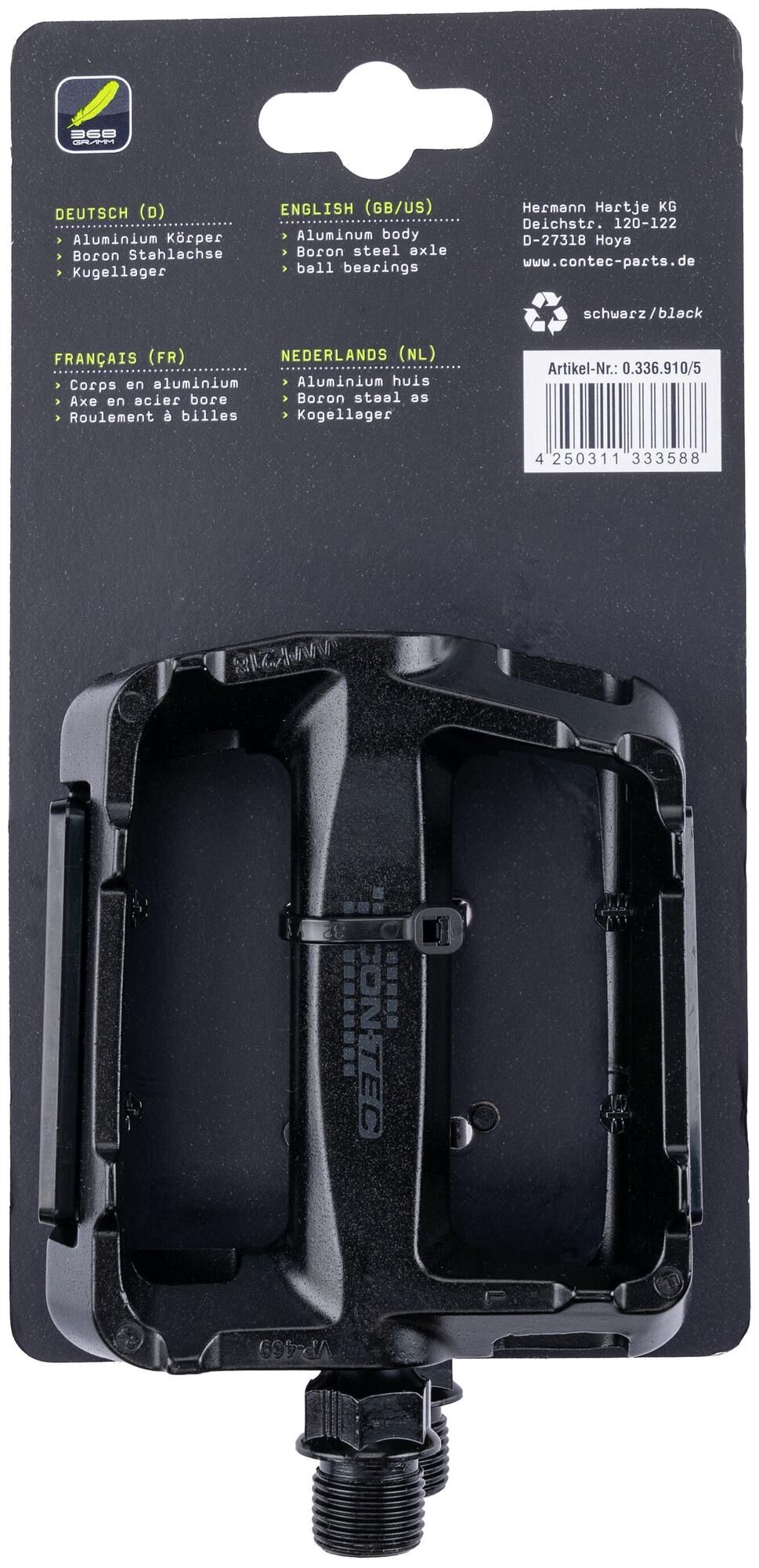 Sportlicher Look & guter HaltDas CONTEC City-/Komfortpedal "Twirl" überzeugt durch ein sportlich-modernes Design, abgerundet durch ein griffiges Profil auf der Trittfläche des Alu-Käfigs. Leichtgängige Kugellager auf einer Boron-Stahl-Achse mit dem gängigem 9/16" Gewinde im robusten Alu-Körper sorgen für eine gute Laufruhe und eine lange Lebensdauer. Aufgrund seines attraktiven Designs und der hochwertigen Verarbeitung ist das 368 g leichte "Twirl" besonders für den Einsatz an sportlichen City-Bikes geeignet. Aluminium für ein leichtes Pedal!