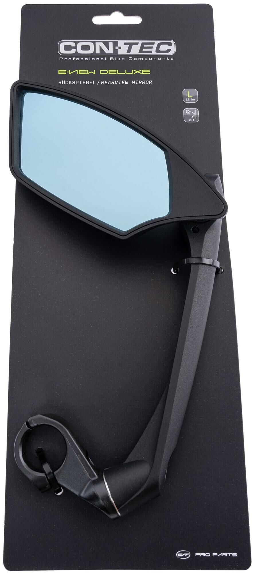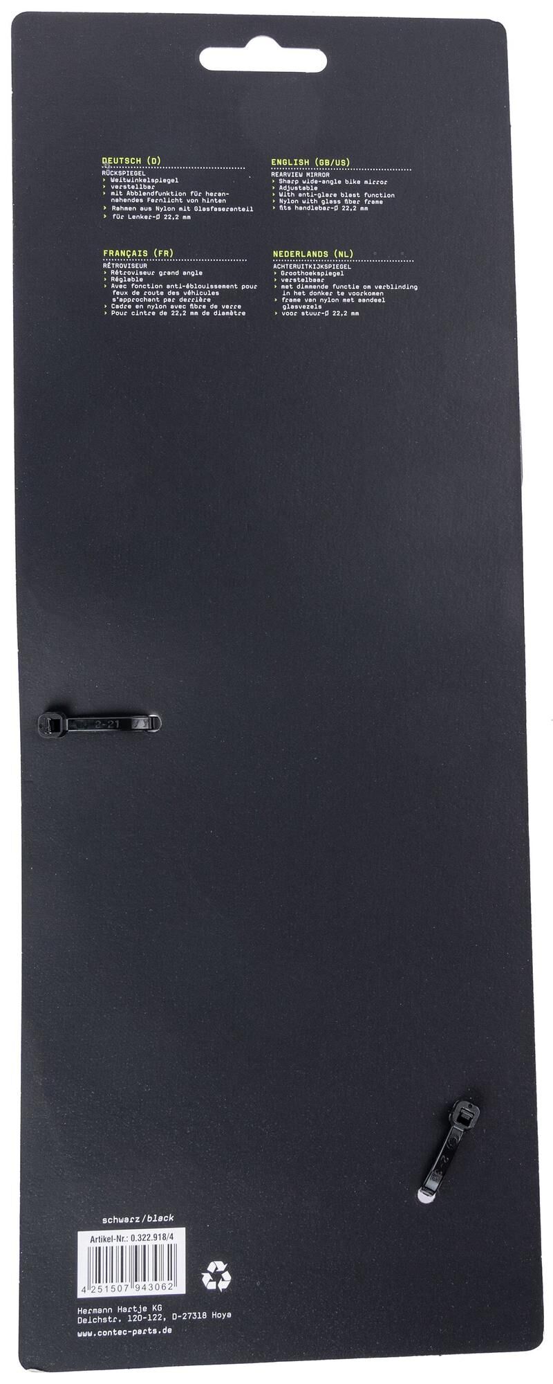 Mit Dazz Linse (bis zu 75 % weniger Reflexion), durch das Gelenk an der Schelle und dem Versatz nach hinten auch kompatibel mit E-Bike Displays (z.B. Bosch Intuvia),verstellbarer Weitwinkelspiegel mit Abblendfunktion für herannahendes Fernlicht von hinten, Rahmen aus Nylon mit Glasfaseranteil, schwarz