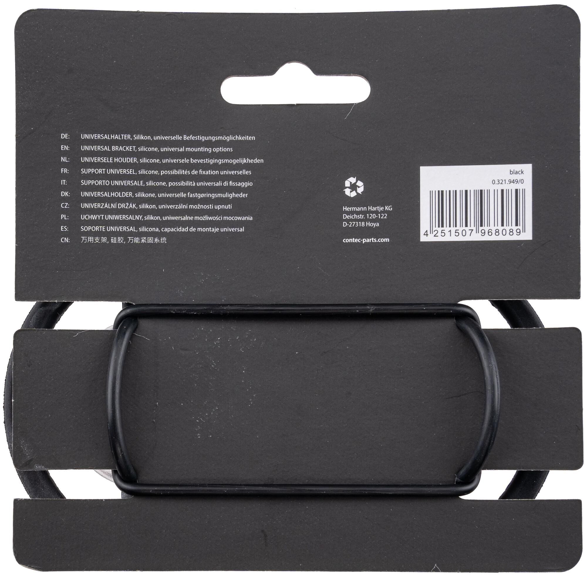 SB verpackt, Silikon, Montage über die Flaschenhalterösen oder werkzeuglos mittels O Ringen z.B. am Lenker, Rahmen, Sattelstütze, Rucksack, ..., es können alle Gegenstände bis zu Ø 3 Zoll / 7,62 cm oder weniger montiert werden, z.B. Smartphone, Taschenlampe, Trinkflasche, Jacke, usw.