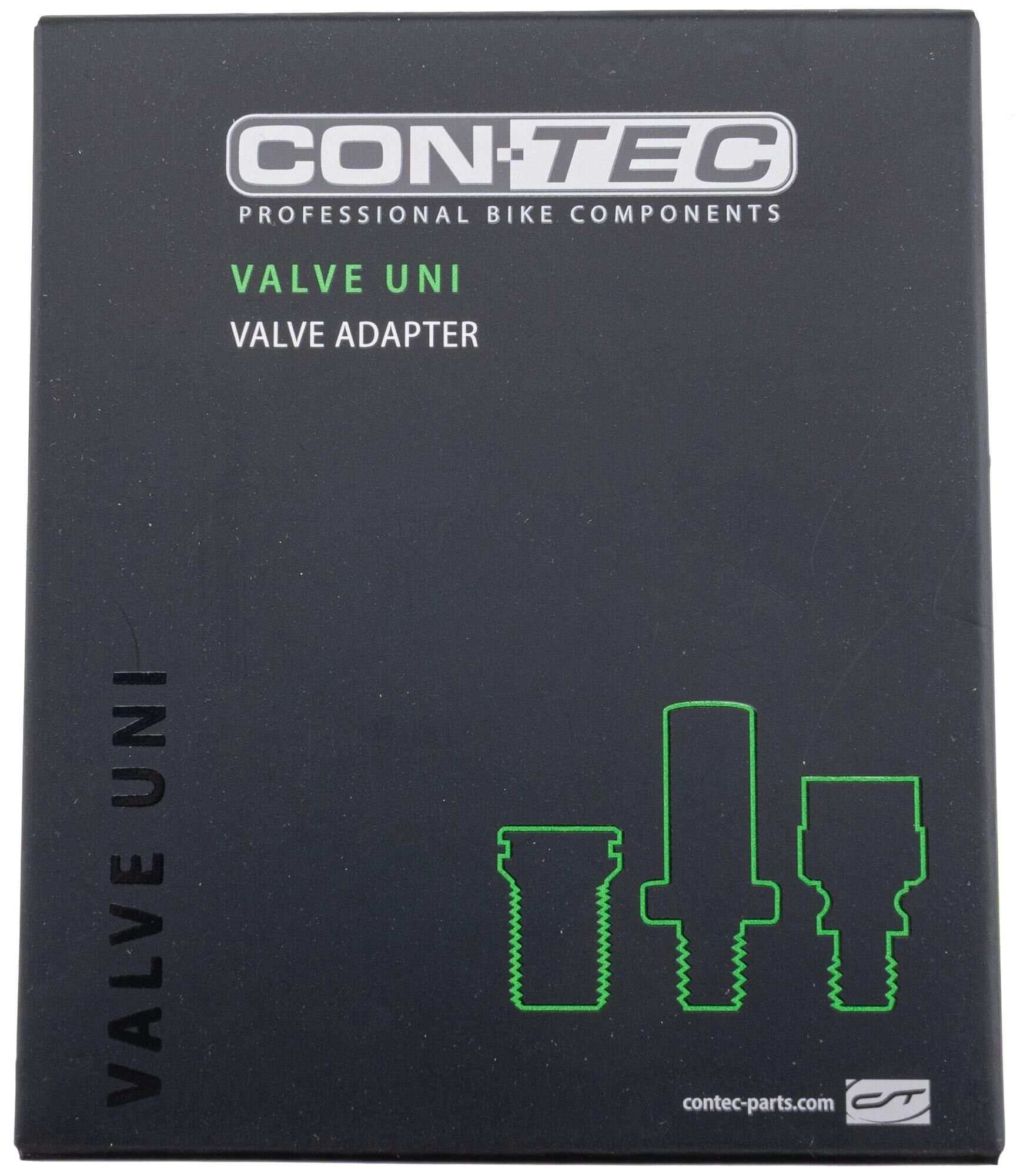 Ventiladapterset "Valve Uni" Ein Adapter-Set für alle Fahrradpumpen. Das "Valve Uni" von CONTEC umfasst Ventil-Adapter für Auto, Dunlop und Sclaverand. Damit ist man für alle Pumpen gerüstet.