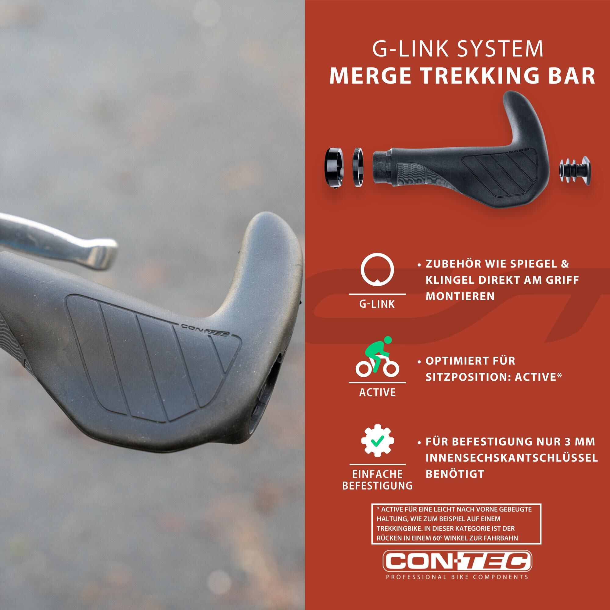 With Contec G-Link system - through the special clamping device accessories can be easily attached to the handle and thus give an orderly and clear handlebar image, left and right usable.