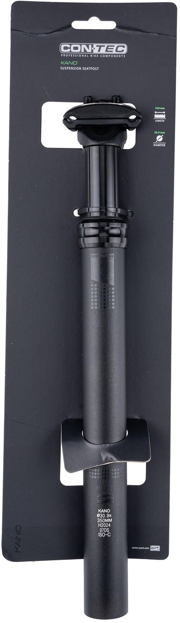 Kano suspension seatposts from CONTEC The Kano from CONTEC is a suspension seatpost that is 350.0 mm long and has a diameter of 30.6 mm. Above all, a suspension Seatpost offers you a lot of comfort. The suspension travel absorbs shocks from cobblestones or uneven forest paths so that they are not transmitted directly to your back. The Seatpost is suitable for all riders weighing a maximum of 120 kg.