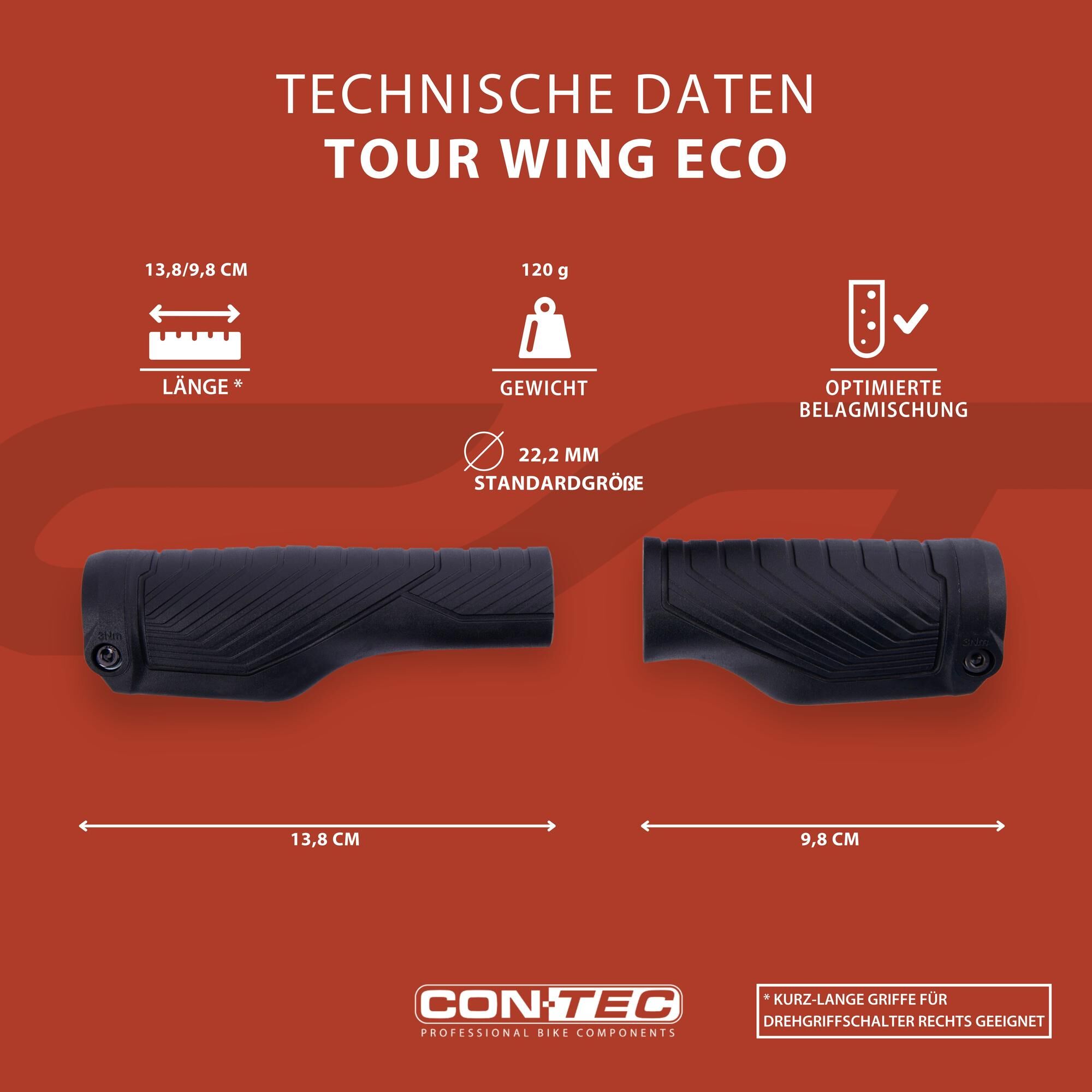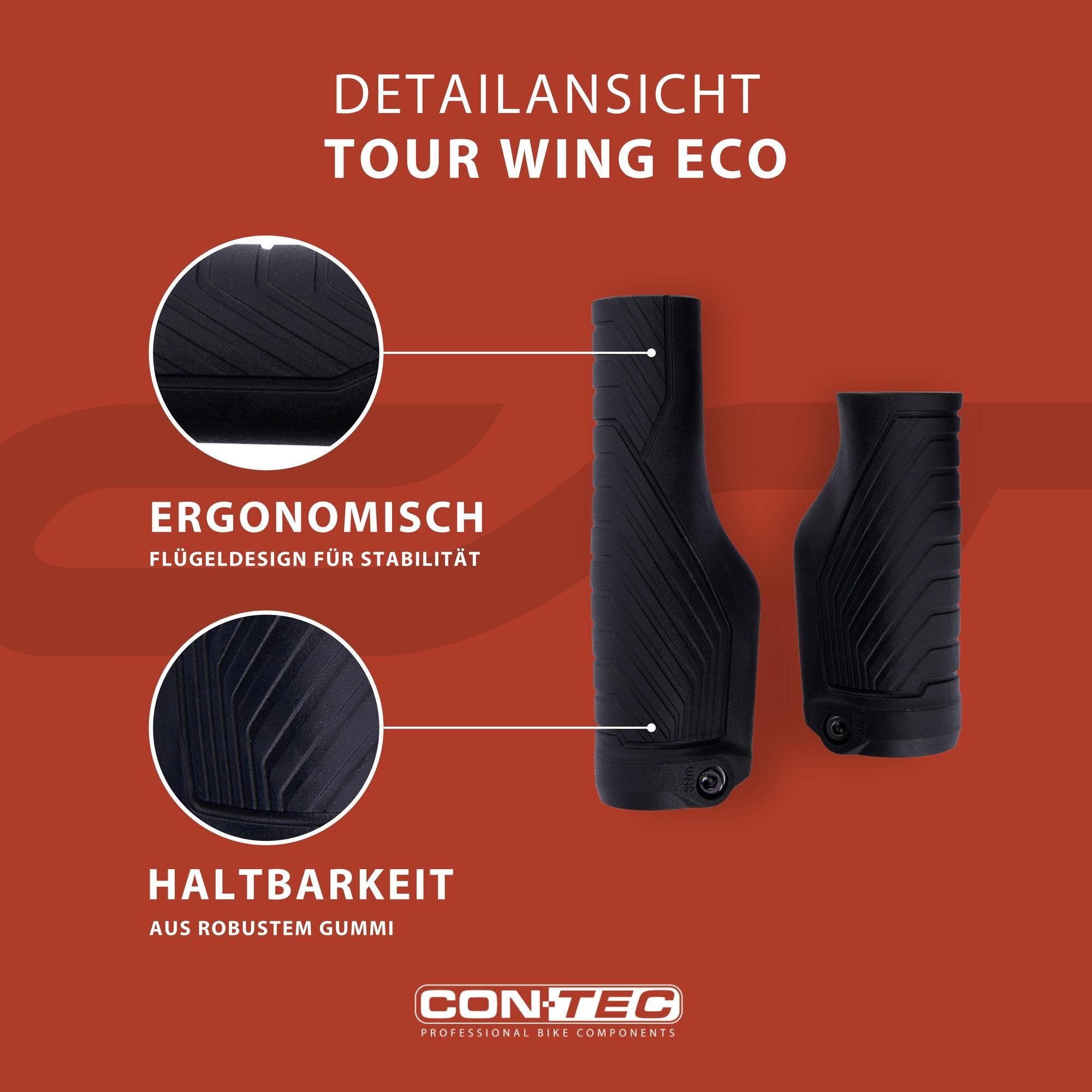 Incl. clamping rings on the otside, ideal for twist grip shifters, the wing-shaped design effectively prevents bending of the wrists and prevents a fatigue of the hands on longer rides, resistant to environmental influences, washable, incl. end plugs