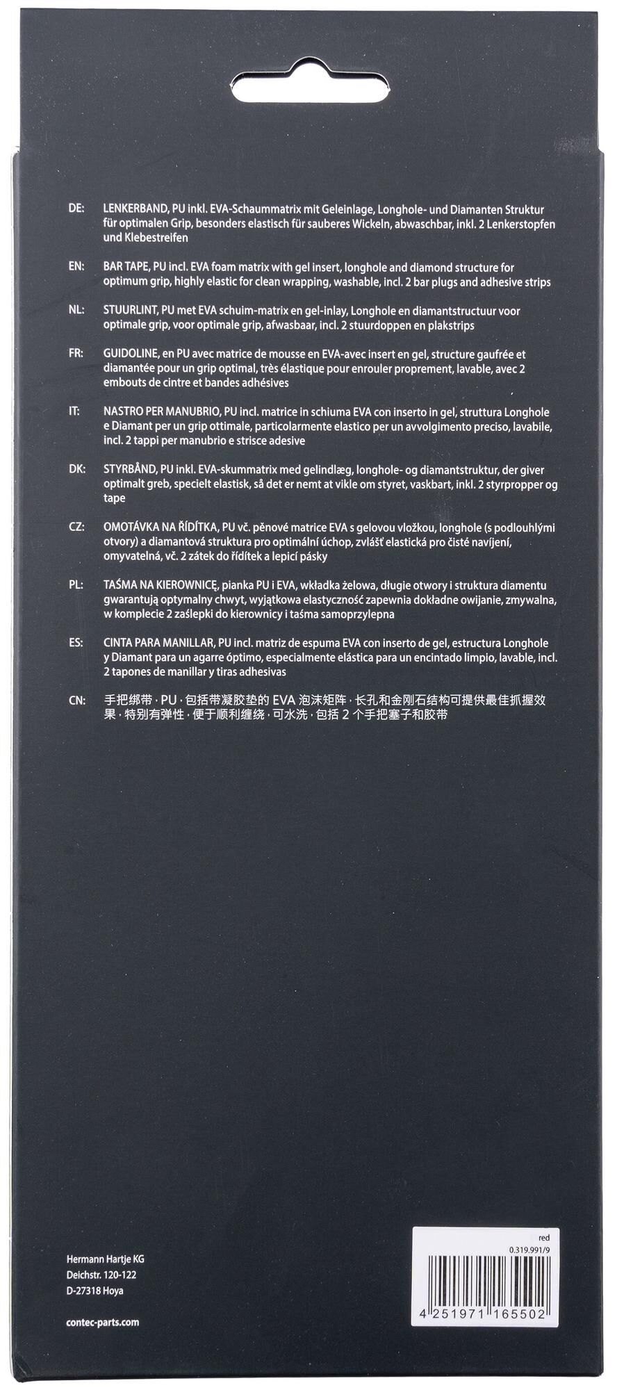 high quality, synthetic EVA foam matrix with gel, improves comfort, reduces vibrations and also ensures optimum grip due to the diamond structure of the surface, particularly elastic, washable, embossed logo on one side allows the strap to be wrapped with either visible or concealed CONTEC branding, incl. 2 bar plugs and adhesive strips for fixing, pair