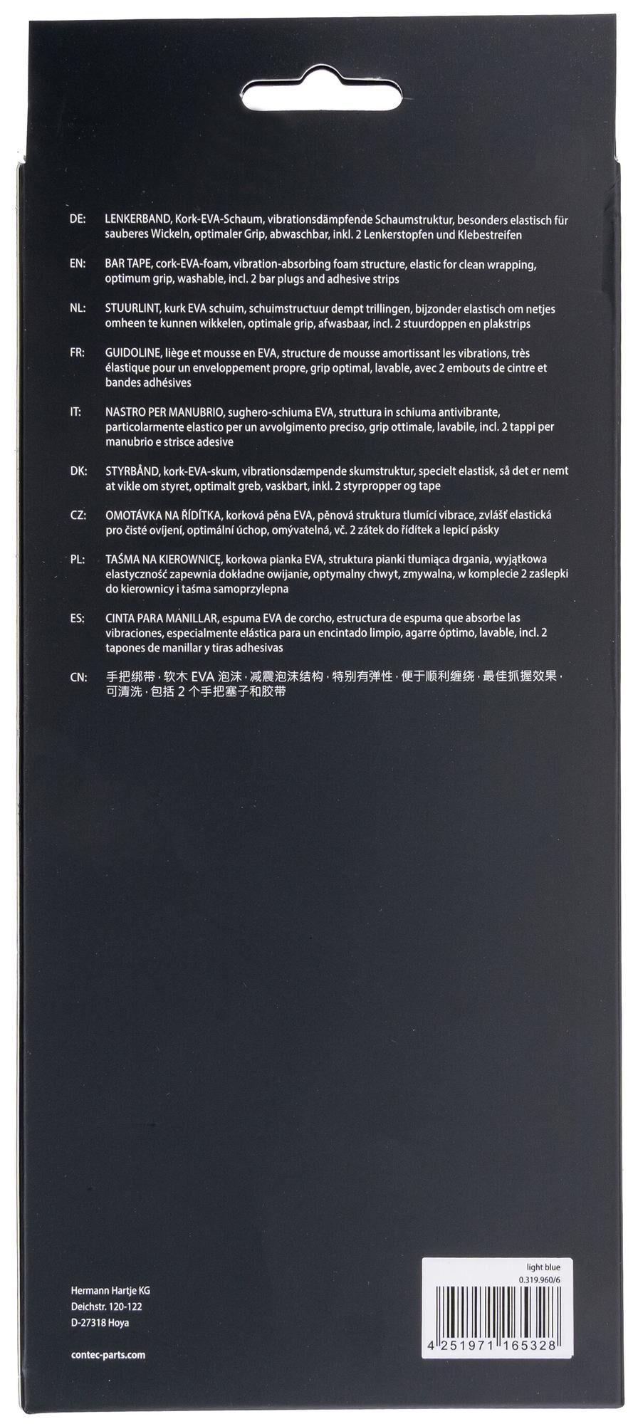 Classic handlebar tape made of cork-EVA foam, with embossed CONTEC branding, foam structure dampens vibrations and significantly reduces pressure loads, particularly elastic for clean wrapping, optimum grip, washable, embossed logo on one side allows the tape to be wrapped with either visible or concealed CONTEC branding, incl. 2 Handlebar Plugs and adhesive strips for fixing, pair