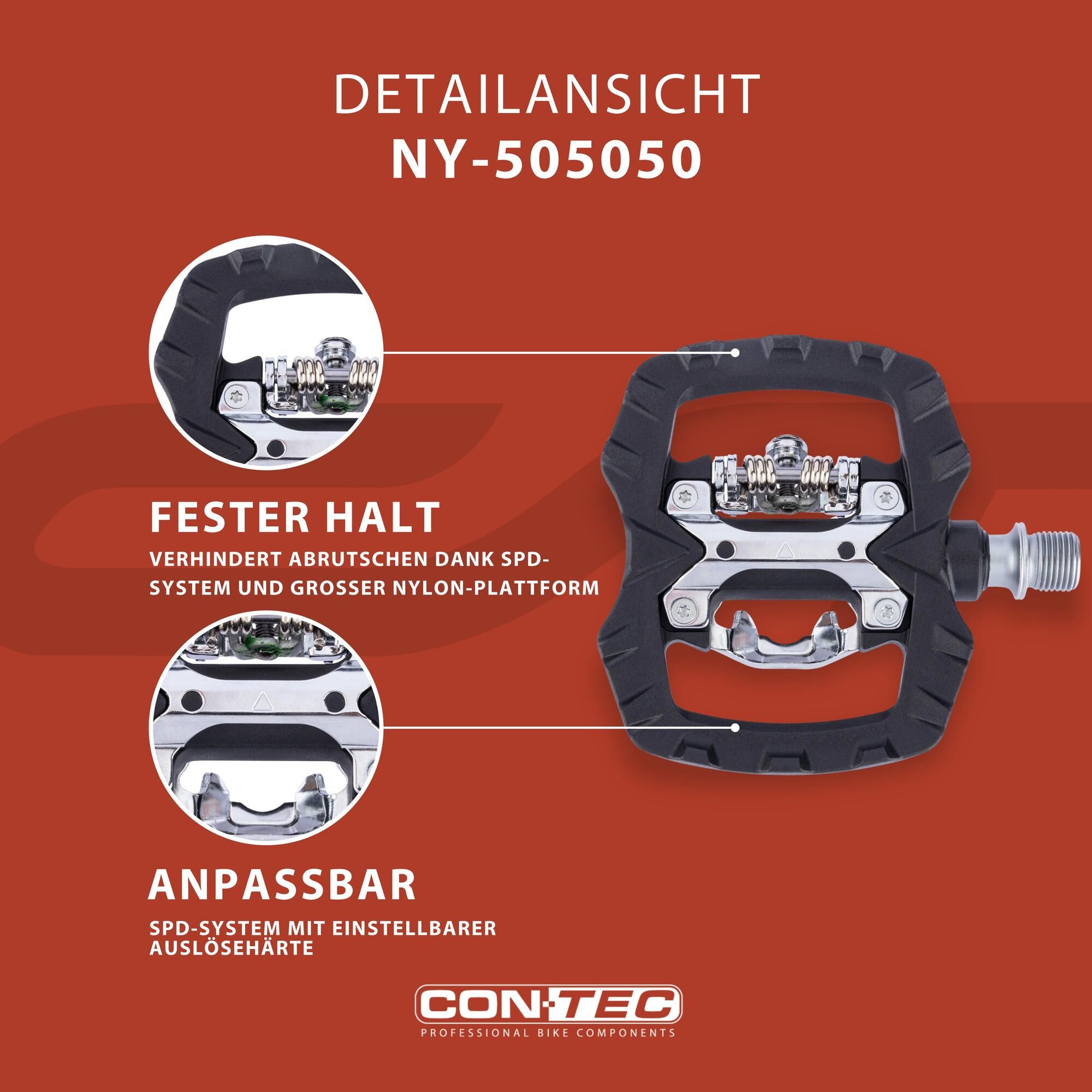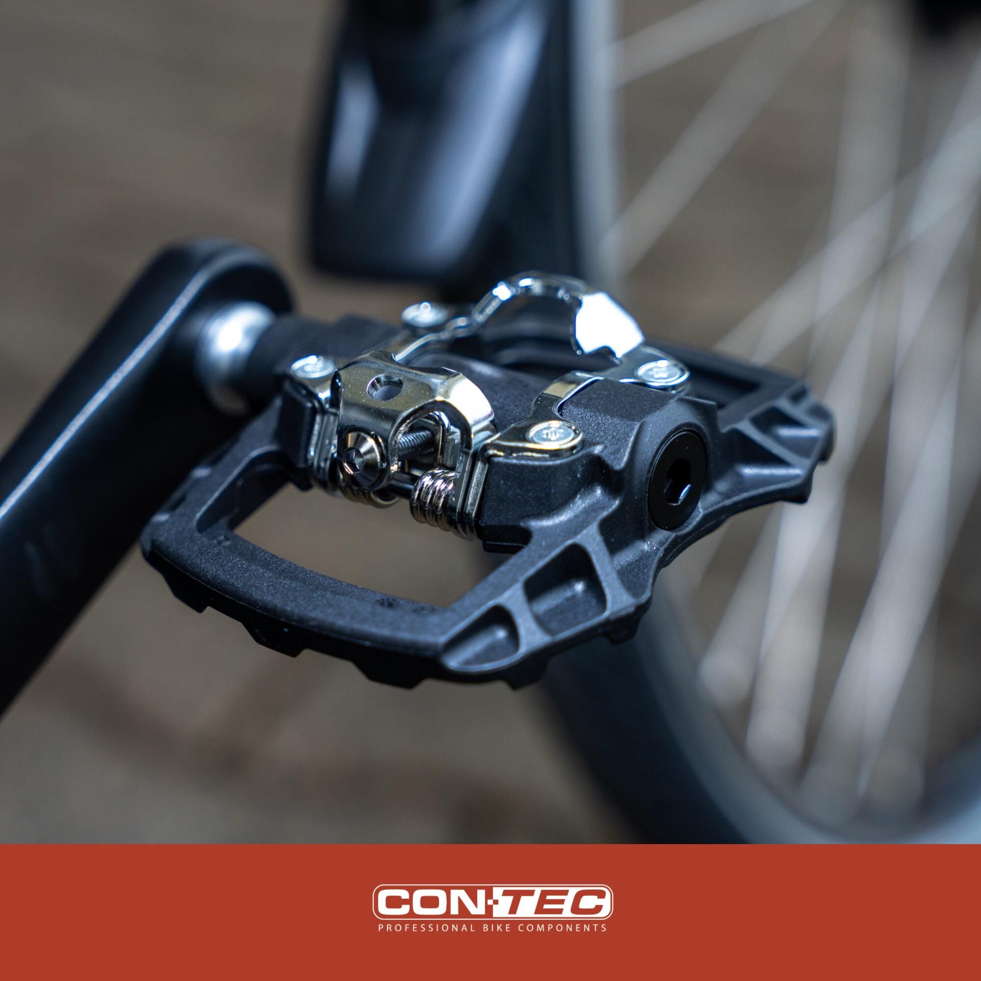 Combines the functionality and reliability of the SPD system with the versatility of a nylon platform, nylon housing, CrMo axle, sealed axle bearings, one side CrMo-binding, adjustable spring tension, large nylon surface, dimensions: 95 x 90mm, 350g