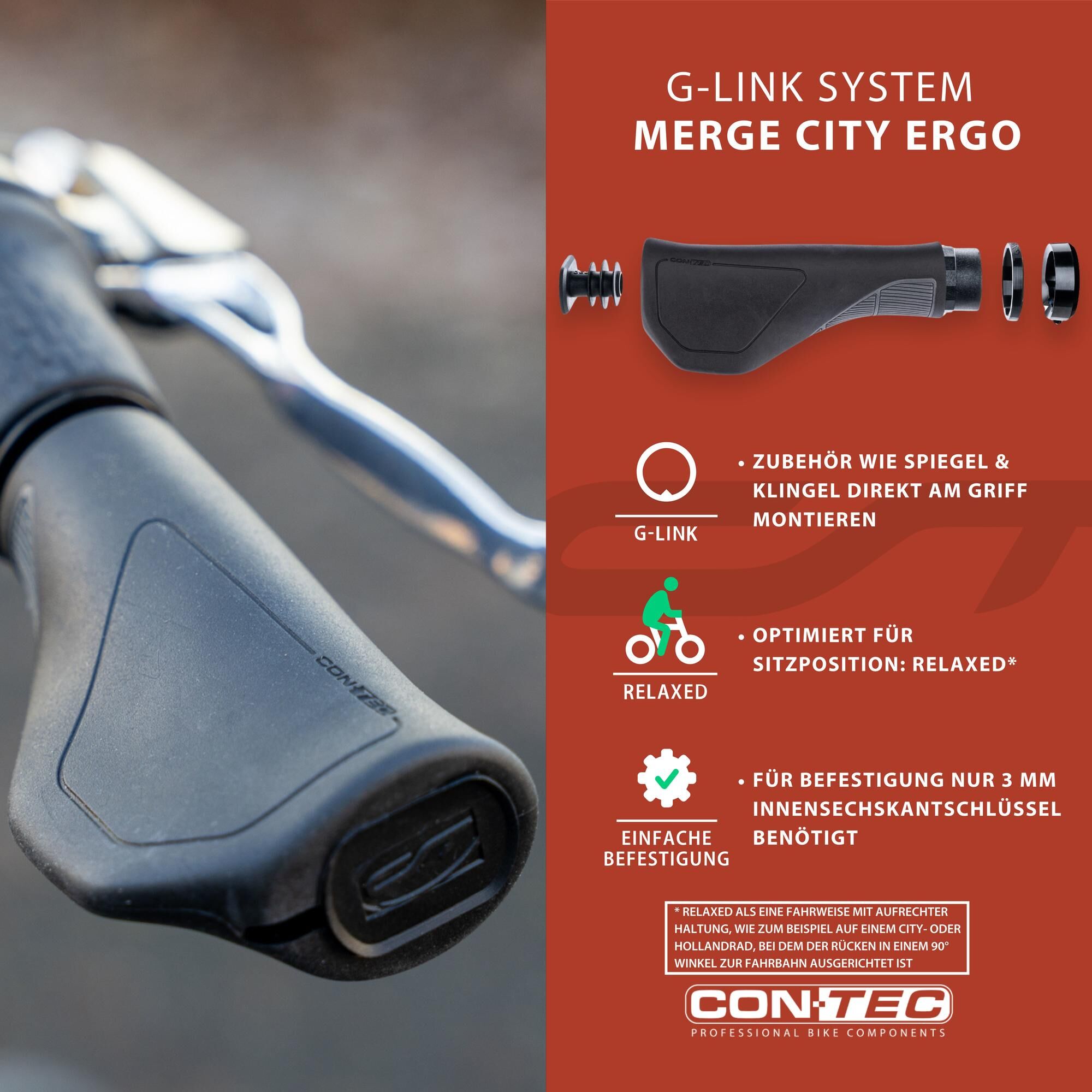 Horizontal lever can be used with CONTEC G-Link system - the special clamp allows the adjustment lever to be attached directly to the CONTEC Merge grip, creating a tidy and clear handlebar design.