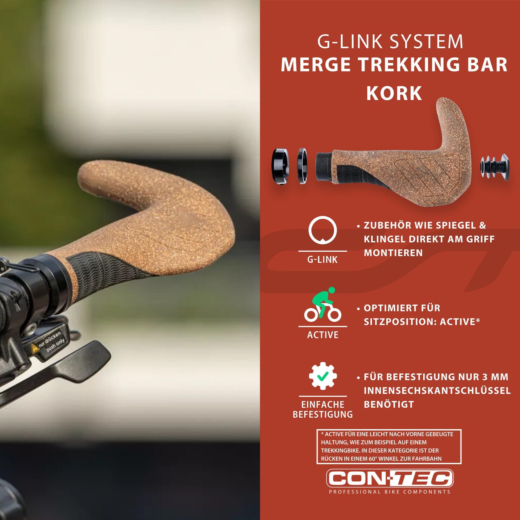 Horizontal lever can be used with CONTEC G-Link system - the special clamp allows the adjustment lever to be attached directly to the CONTEC Merge grip, creating a tidy and clear handlebar design.