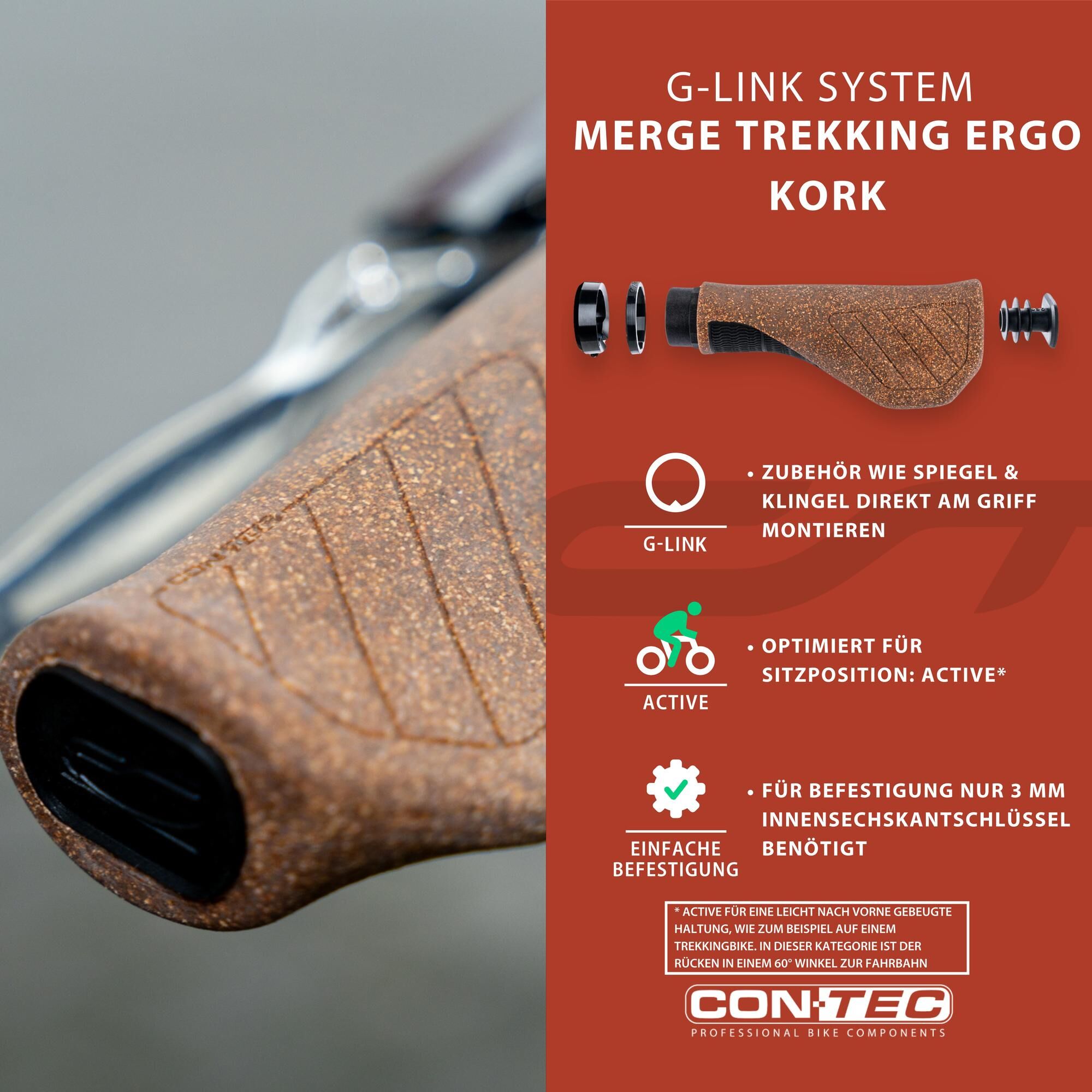 Grâce au système CONTEC G-Link, un dispositif de serrage spécial, les accessoires peuvent être facilement fixés à la poignée et donnent ainsi une image épurée et claire du guidon, utilisable à gauche et à droite