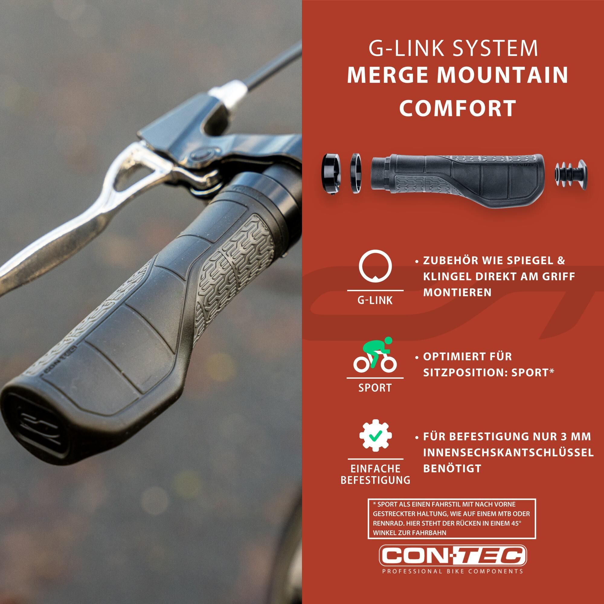 Le levier horizontal peut être utilisé avec le système CONTEC G-Link. Il se fixe facilement sur la poignée CONTEC Merge et donnent ainsi une image épurée et claire du guidon.