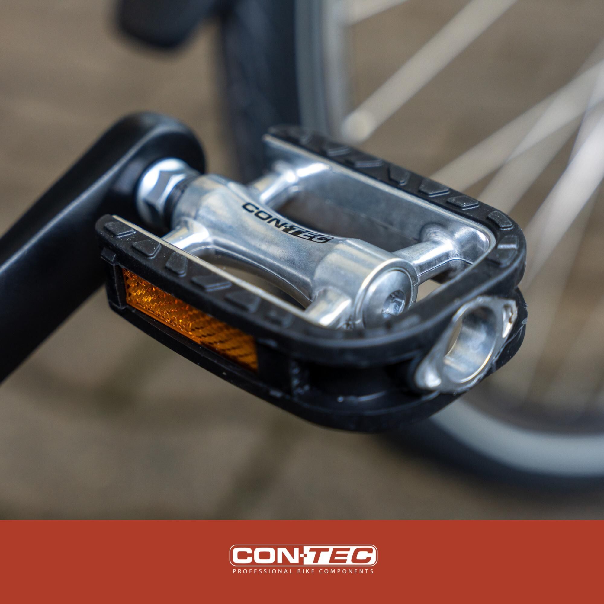 Antiscivolo e riflettenteIl pedale perfetto per i tour sportivi, anche su terreni impegnativi: con un battistrada antiscivolo e un catarifrangente visibile da lontano, CONTEC offre un pedale da turismo che permette di affrontare le sfide in tutta sicurezza.Molti conoscono una situazione simile: Tornate a casa stanchi ma felici da un giro in bicicletta al tramonto e temete che gli altri utenti della strada non vi riconoscano? Con il pedale da turismo/trekking CONTEC "Verge" sotto i piedi, potete tirare un sospiro di sollievo in una situazione del genere. Grazie al catarifrangente illuminato sul pedale, i conducenti di auto, ad esempio, possono riconoscere la bicicletta da lontano.Anche il battistrada antiscivolo di questo pedale da 9/16" è impressionante in termini di sicurezza. Un ingegnoso profilo attorno alla gabbia di alluminio assicura che non si perda mai la presa, anche nelle discese veloci, sotto la pioggia improvvisa o su strade accidentate. Potrete invece rilassarvi e concentrarvi sul paesaggio o sui vostri compagni di viaggio.Chi ha esperienza di ciclismo da turismo sa che è necessario evitare qualsiasi peso superfluo sulla bicicletta. CONTEC realizza questo principio fino ai pedali. Il "Verge" è un pedale da turismo di alta qualità che pesa solo 304 g con il suo cuscinetto industriale sigillato, l'elegante asse in Asse e il robusto corpo in alluminio. Questo pedale è anche all'avanguardia nel design: Il cromo lampeggiante, il nero di classe e il giallo-arancio dei catarifrangenti formano un trio visivo forte che attira l'attenzione. Con il "Verge" di CONTEC, avrete un pedale da turismo/trekking unico per la vostra bicicletta!