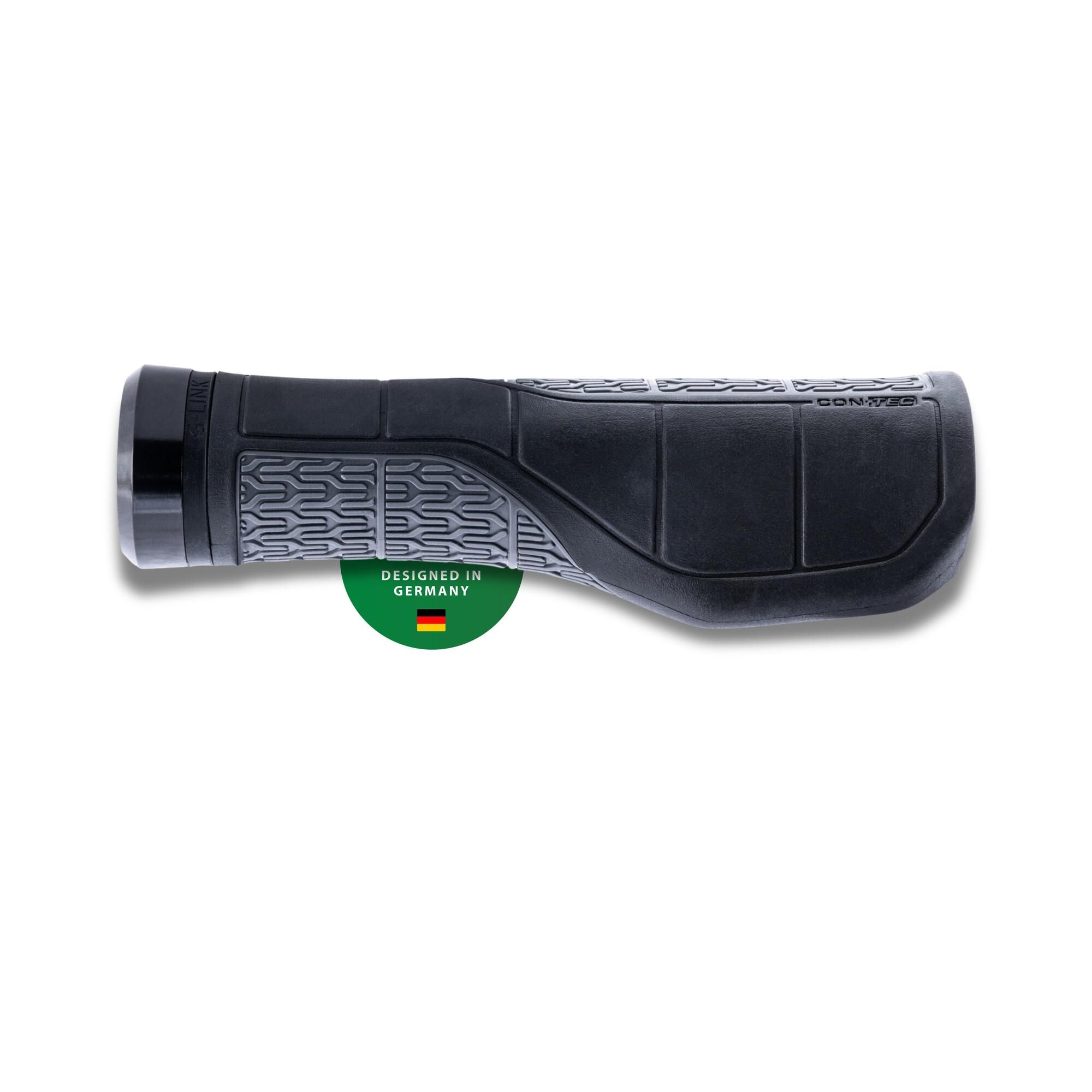 Ergonomische vorm en functie: het vleugelvormig design voorkomt effectief het ombuigen van de pols, de geïntegreerde demping voorkomt pijn. In het handpalm-bereik zorgt de centrale 3-componenten constructie voor een goede en veilige grip, in het achterste gedeelte is de zachtere verbinding trillings- en schokabsorberend, de harde constructie aan de binnenkant zorgt voor een veilige verbinding tussen handvat en stuurbocht, incl. stuurdoppen