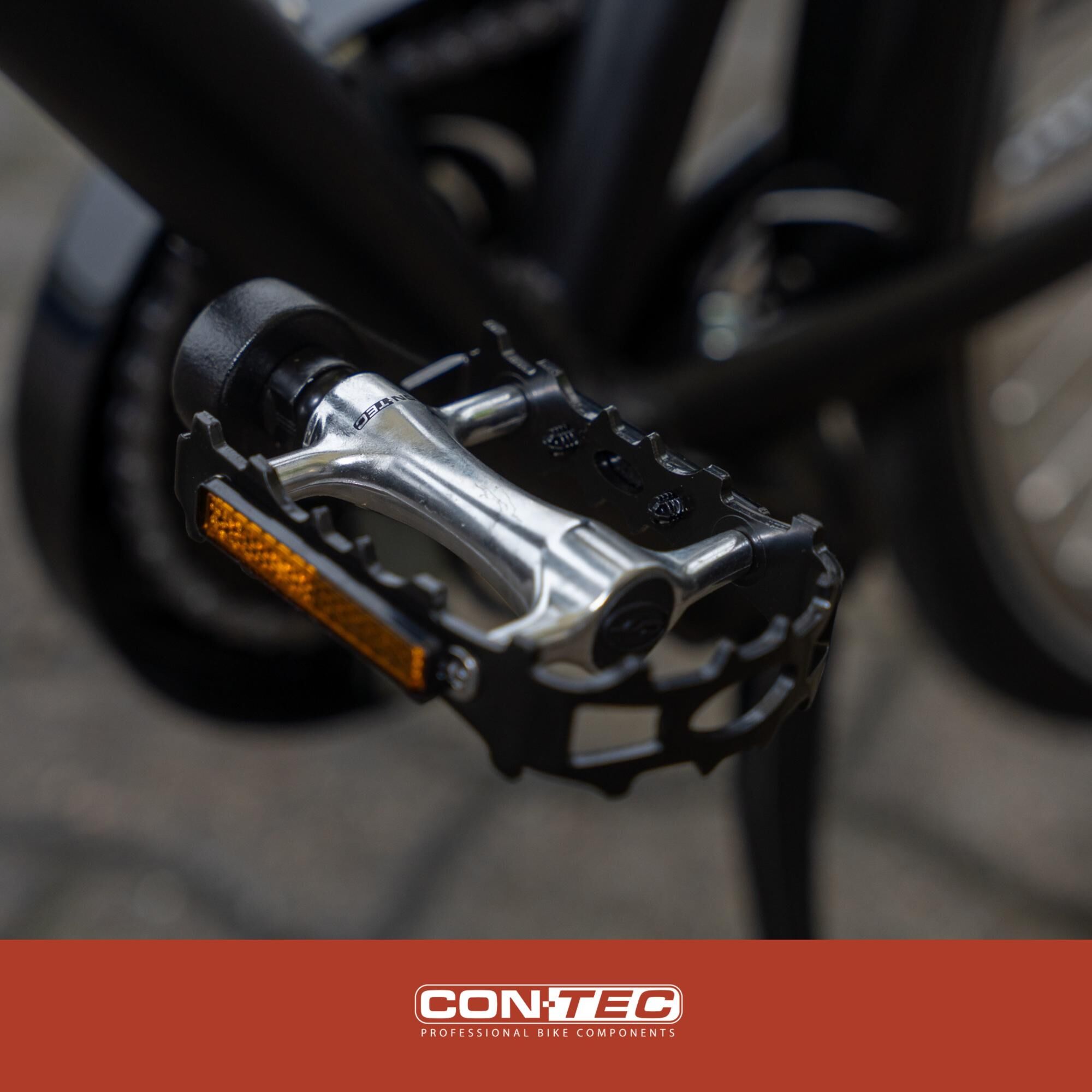Slipvast en stabielDankzij de aluminium body biedt het CONTEC mountainbike-pedaal "Spinner" een slipvaste steun en draait met geslepen kogellagers om de stevige as van CrMo-staal. Het gewicht bedraagt inclusief reflectoren ong. 240 g.
