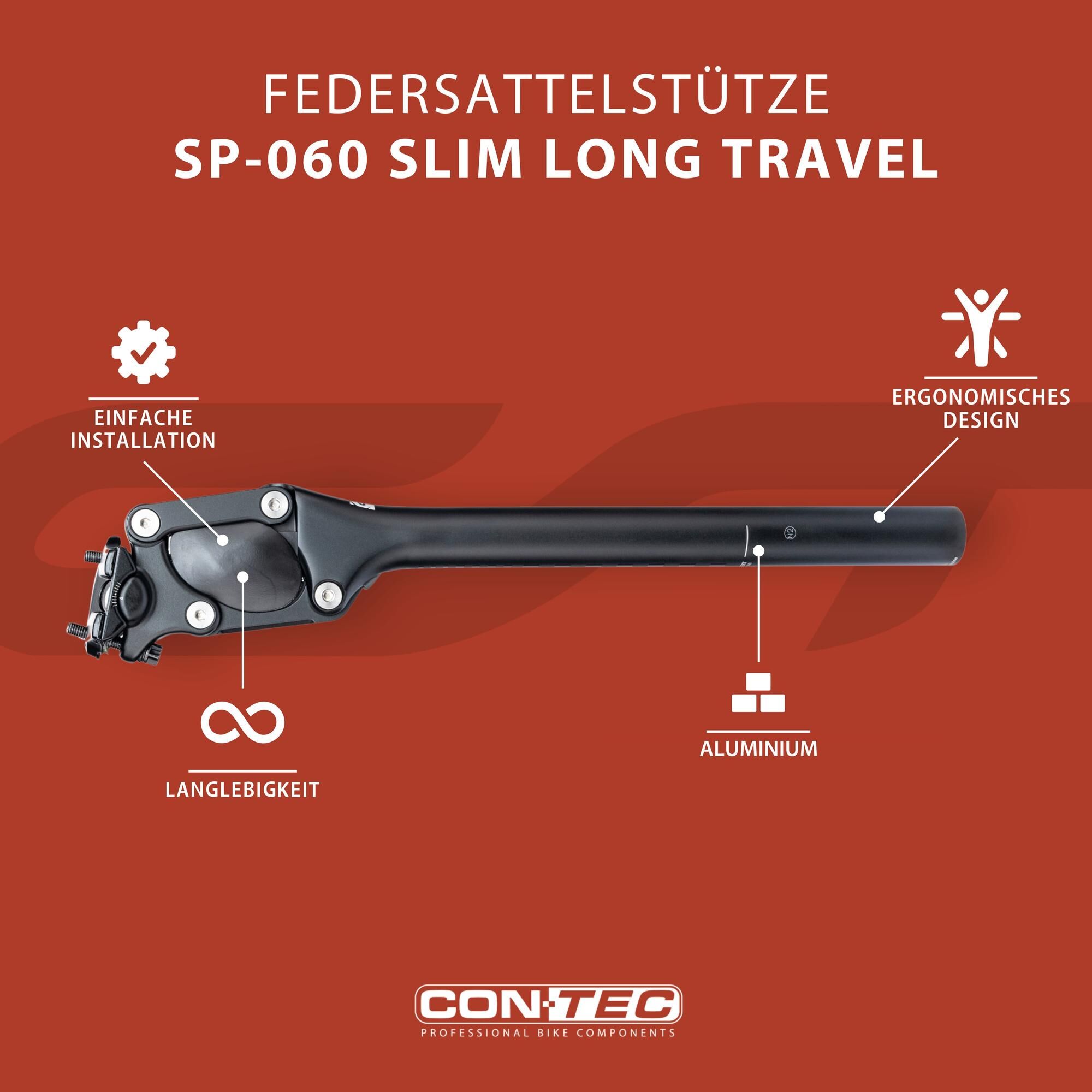 CONTEC Parallellogram verende zadelpen "SP-060 Slim Long Travel" Dit artikel is beschikbaar in 6 versies.